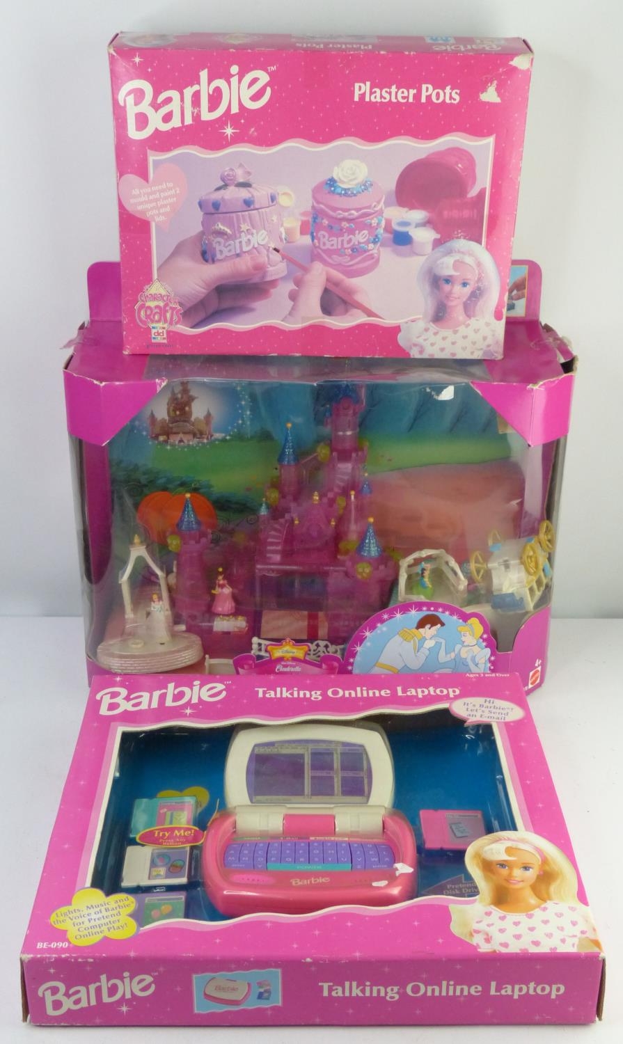 3 boxed Barbie toy sets.
