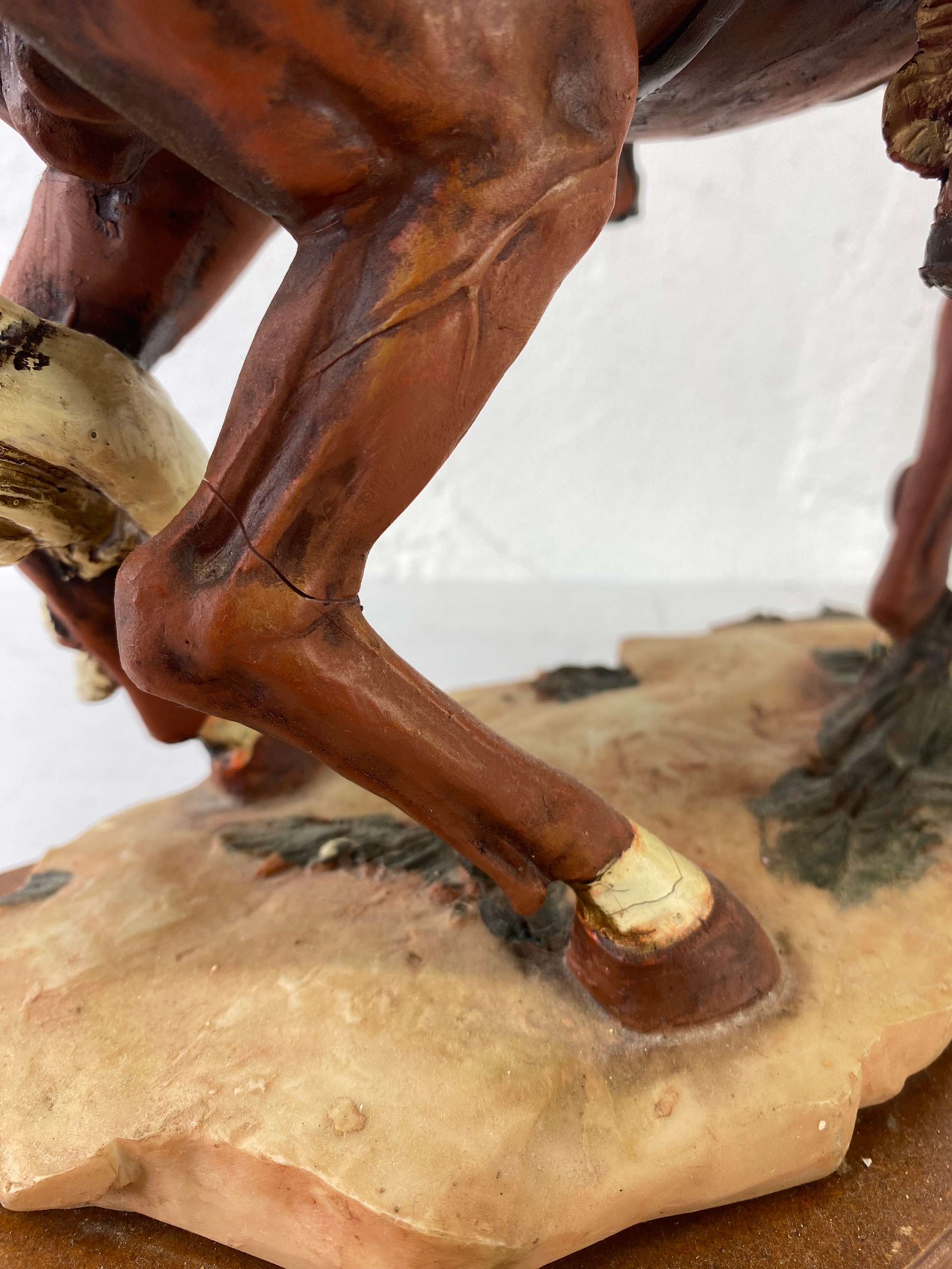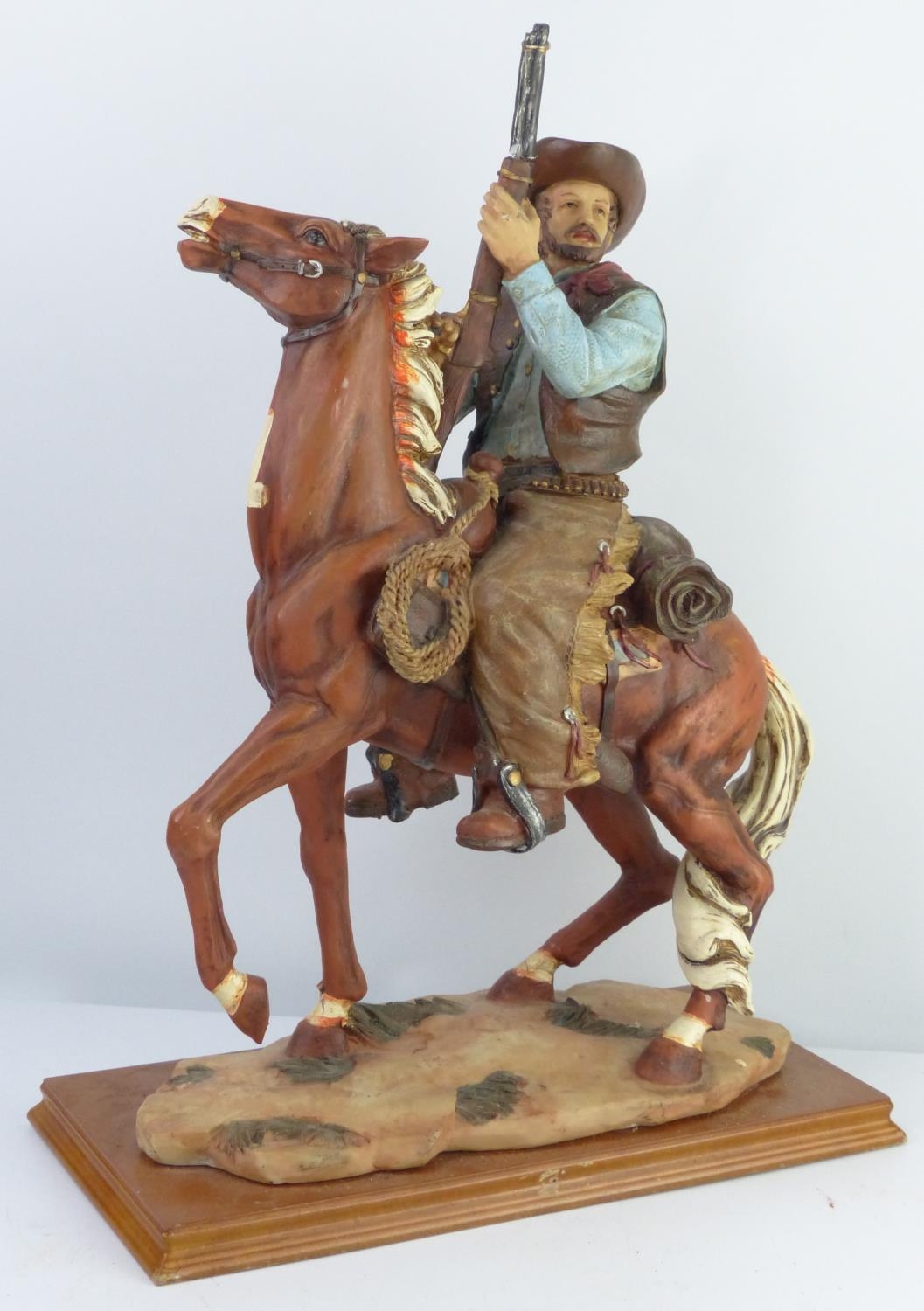 A large resin figure of a cowboy on horseback, 45cm.