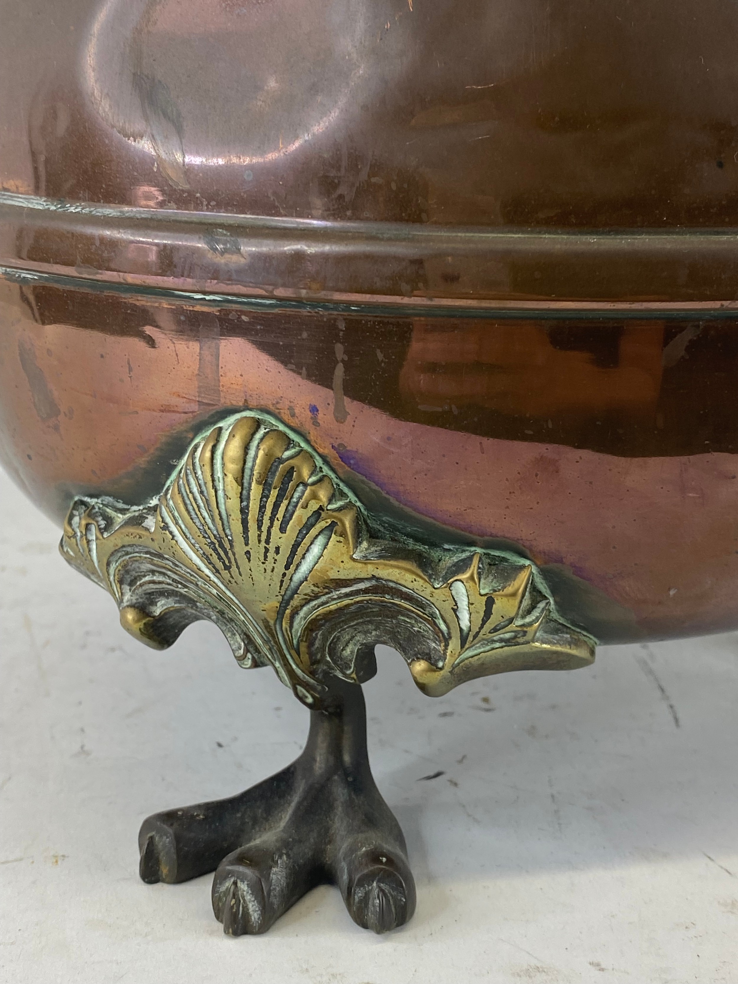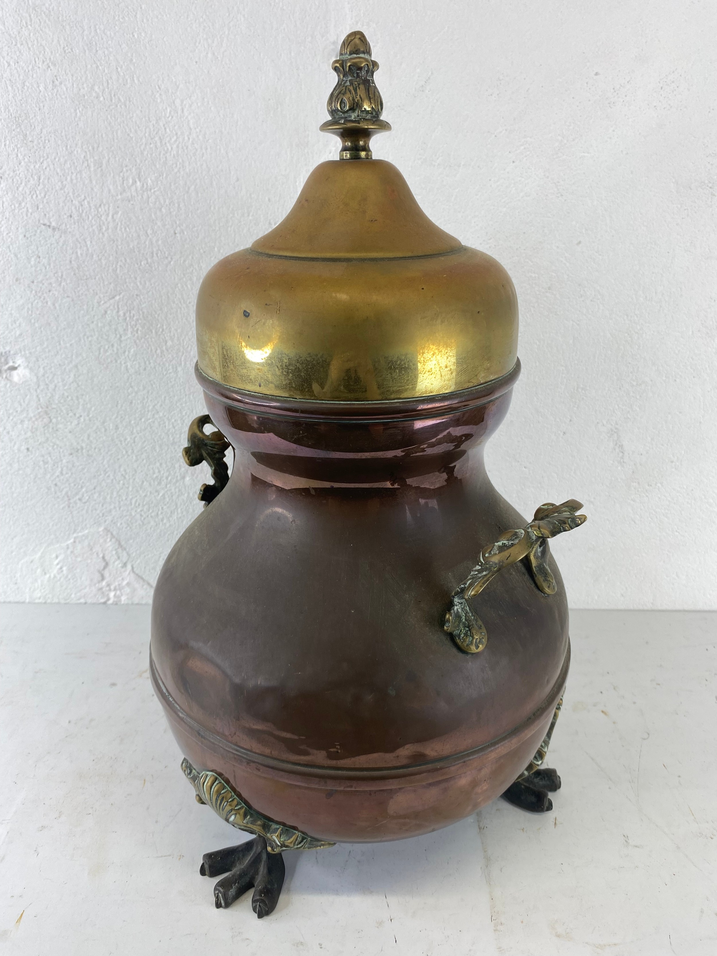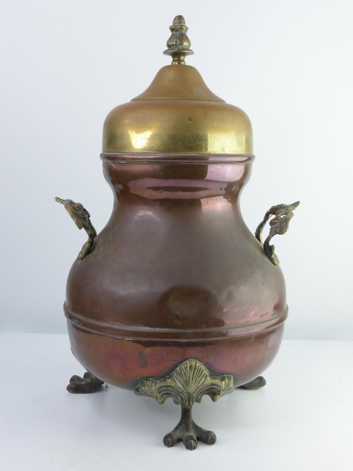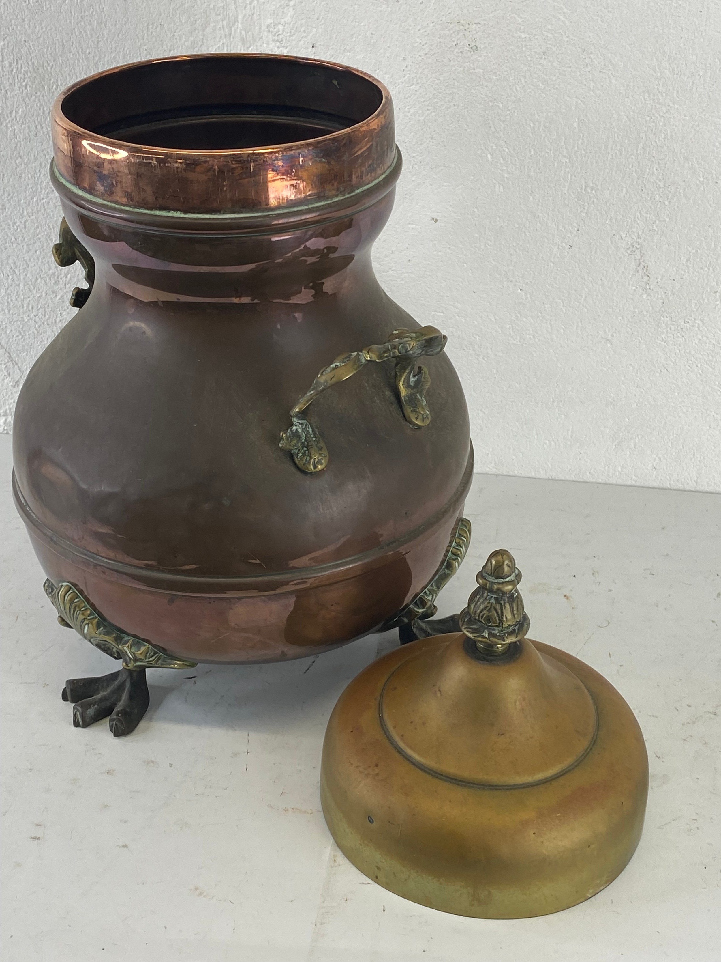 An antique copper & brass urn. 43cm