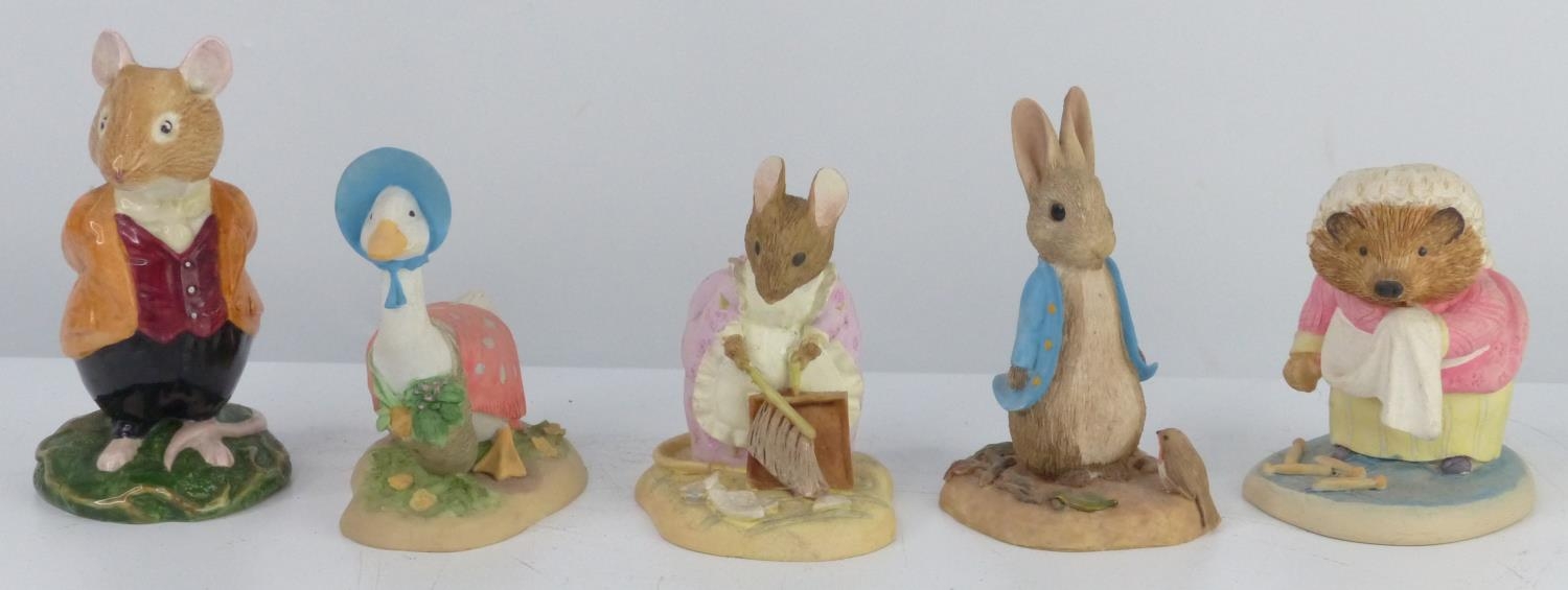 A collection of 5 Beatrix Potter figures, to include Royal Doulton & more.