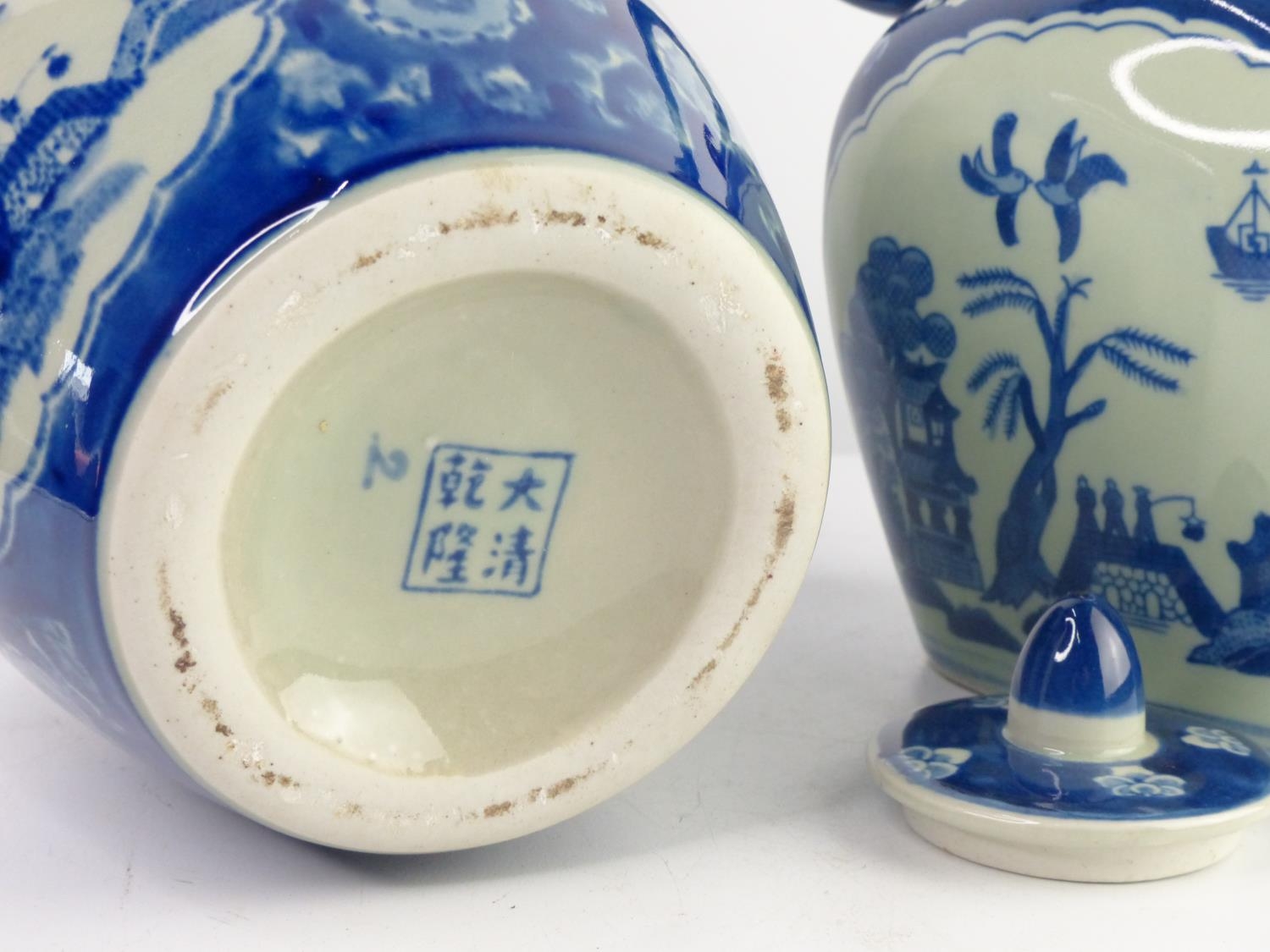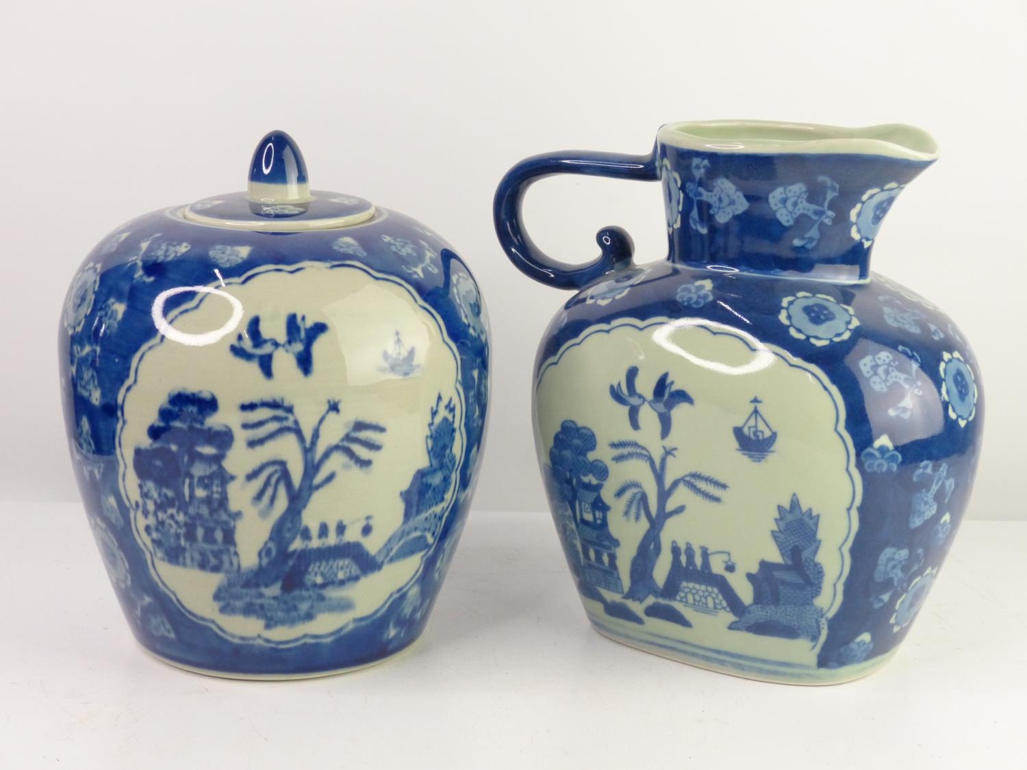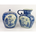 A pair of antique style blue & white decorative ceramics, to include a ginger jar & jug.