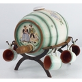 A vintage/ retro barrel liqueur set, modelled as a barrel on...