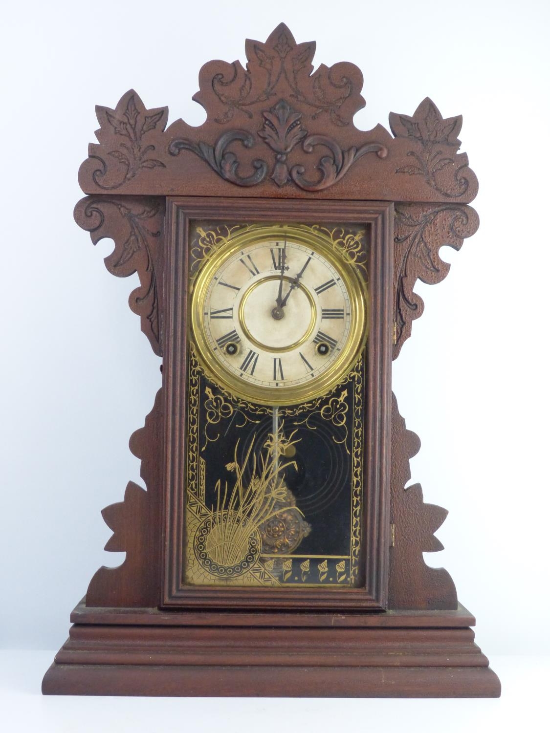 An antique Gingerbread/ schoolhouse clock. 58cm tall