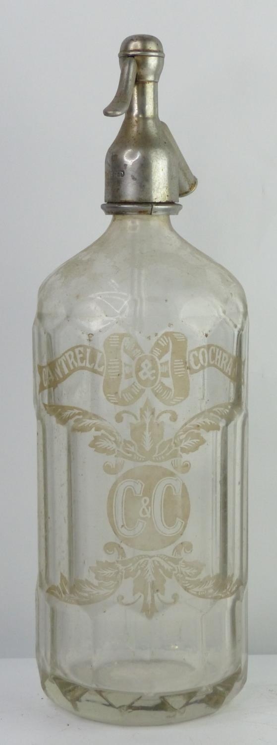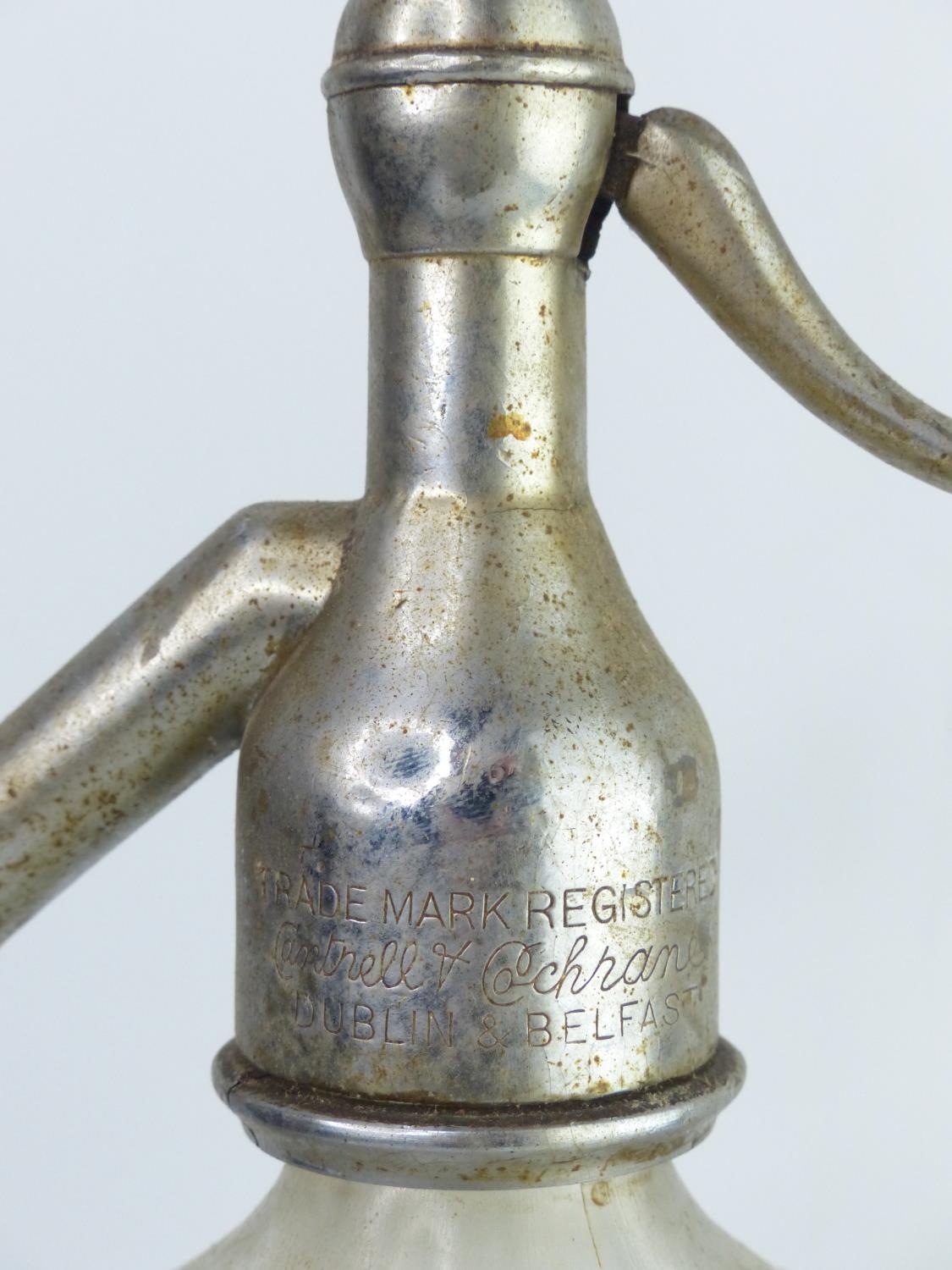 A large antique advertising soda syphon, 'Cantrell & Cochrane'.